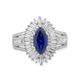 • Load image into Gallery viewer, Jewelili Cocktail Ring with Round and Baguette Shape Created White Sapphire in Sterling Silver 10x5mm Marquise Created Blue Sapphire View 1