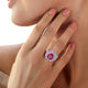 • Load image into Gallery viewer, Jewelili Halo Ring with Oval Created Ruby Framed with Round Created White Sapphire and Oval Pink Sapphire Sterling Silver View 2