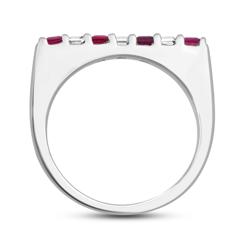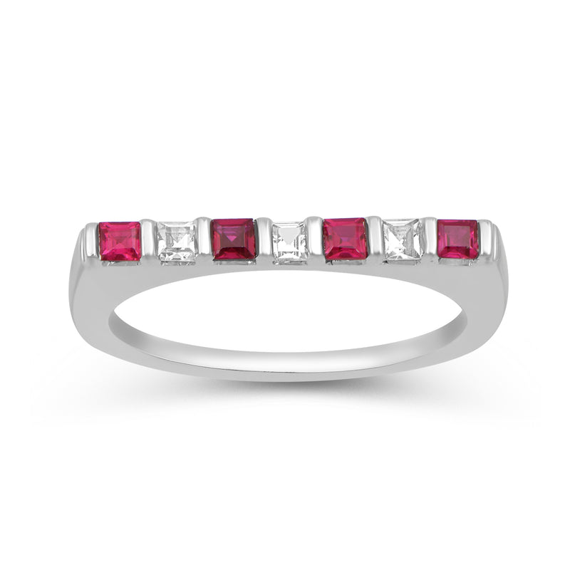 • Load image into Gallery viewer, Jewelili Wedding Band with Square Created Ruby and Created White Sapphire in Sterling Silver View 1
