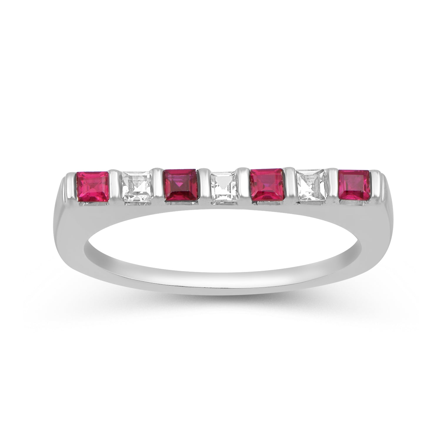 Jewelili Sterling Silver With Square Created Ruby and Created White Sapphire Wedding Band