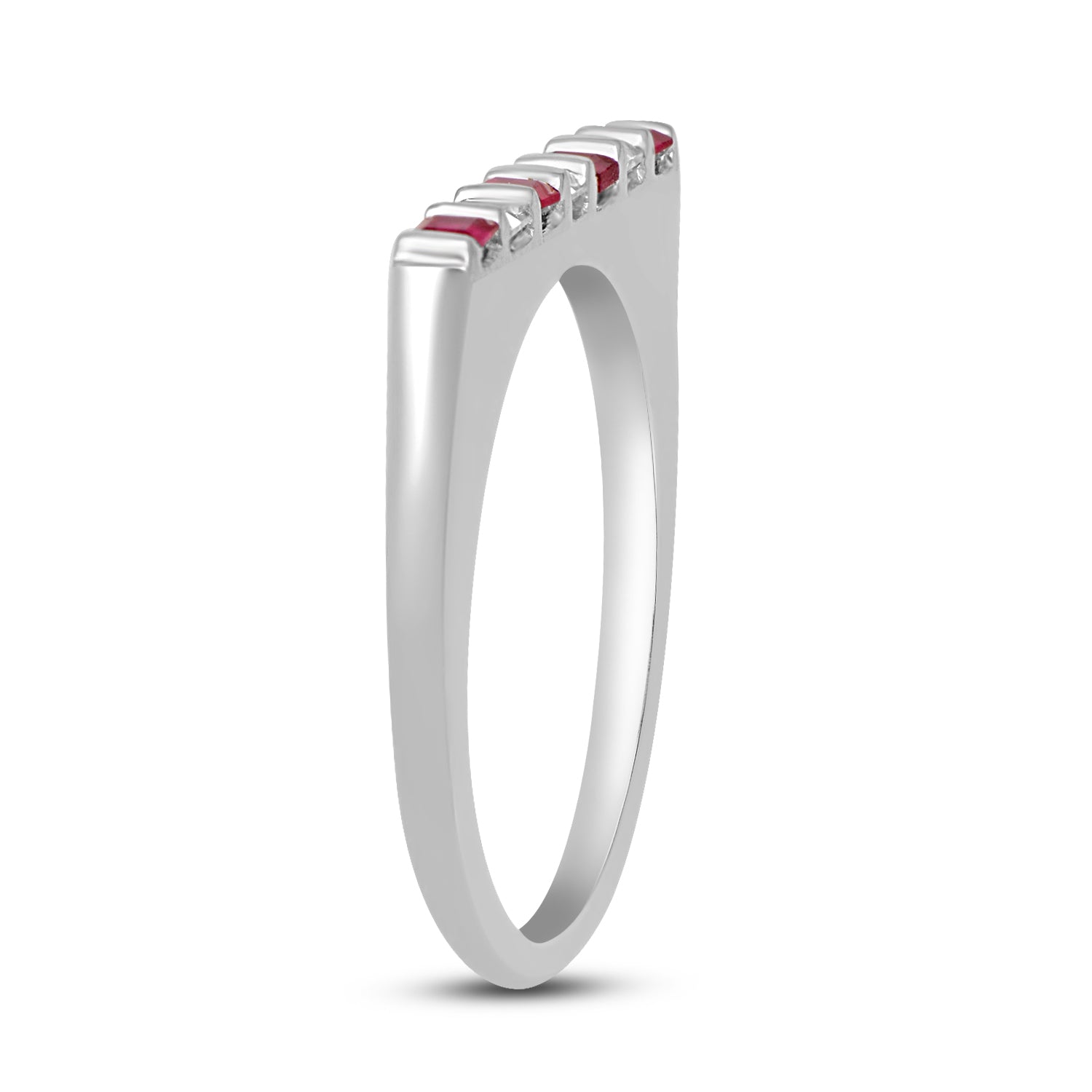 • Load image into Gallery viewer, Jewelili Wedding Band with Square Created Ruby and Created White Sapphire in Sterling Silver View 5