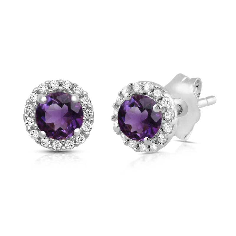 • Sterling Silver 4 MM Round Amethyst and Cubic Zirconia Stud Earrings
