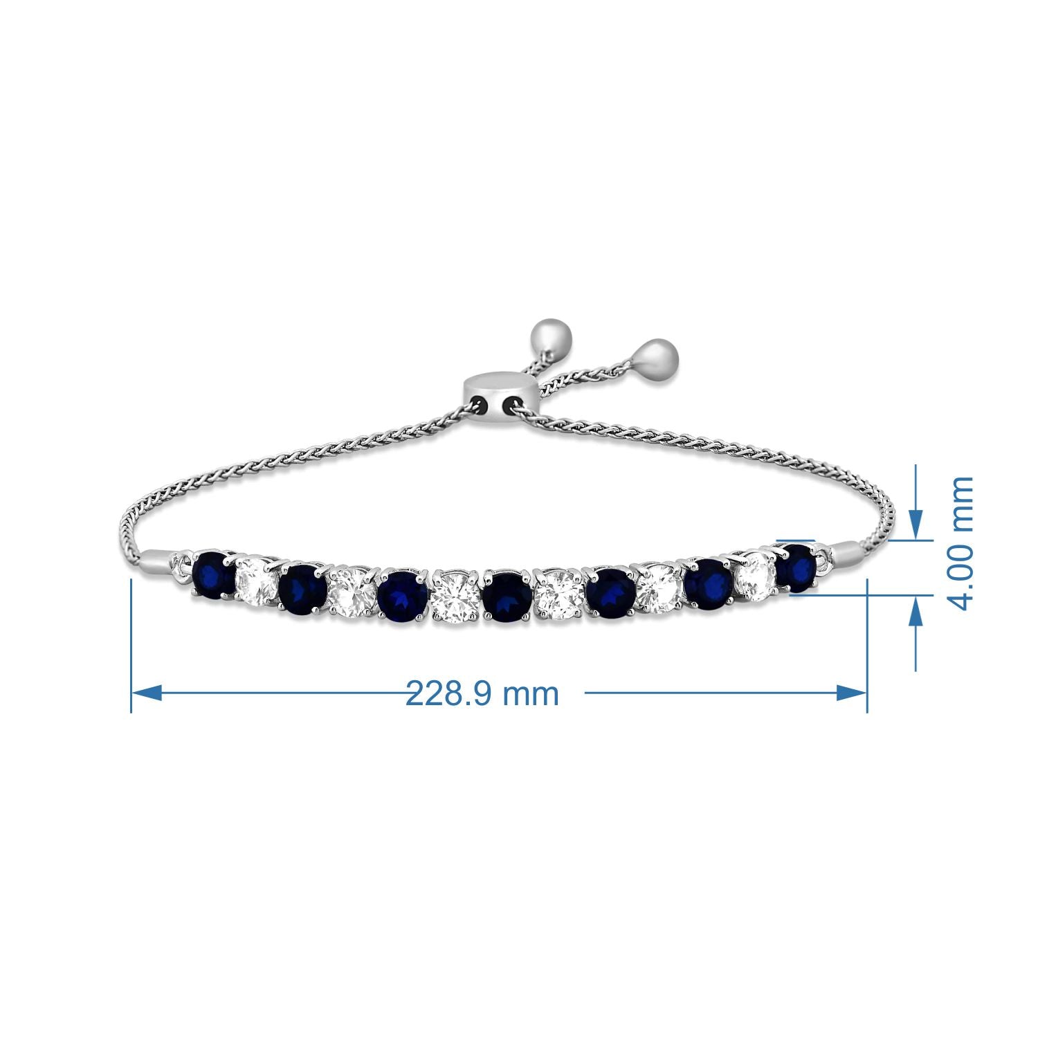 Jewelili Sterling Silver Round Created Blue Sapphire and Created White Sapphire Bolo Bracelet