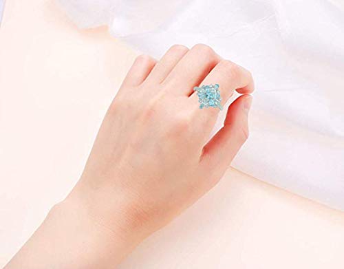 • Load image into Gallery viewer, Jewelili Cocktail Ring with Swiss Blue Topaz with Sky Blue Topaz and Created White Sapphire in Sterling Silver View 3