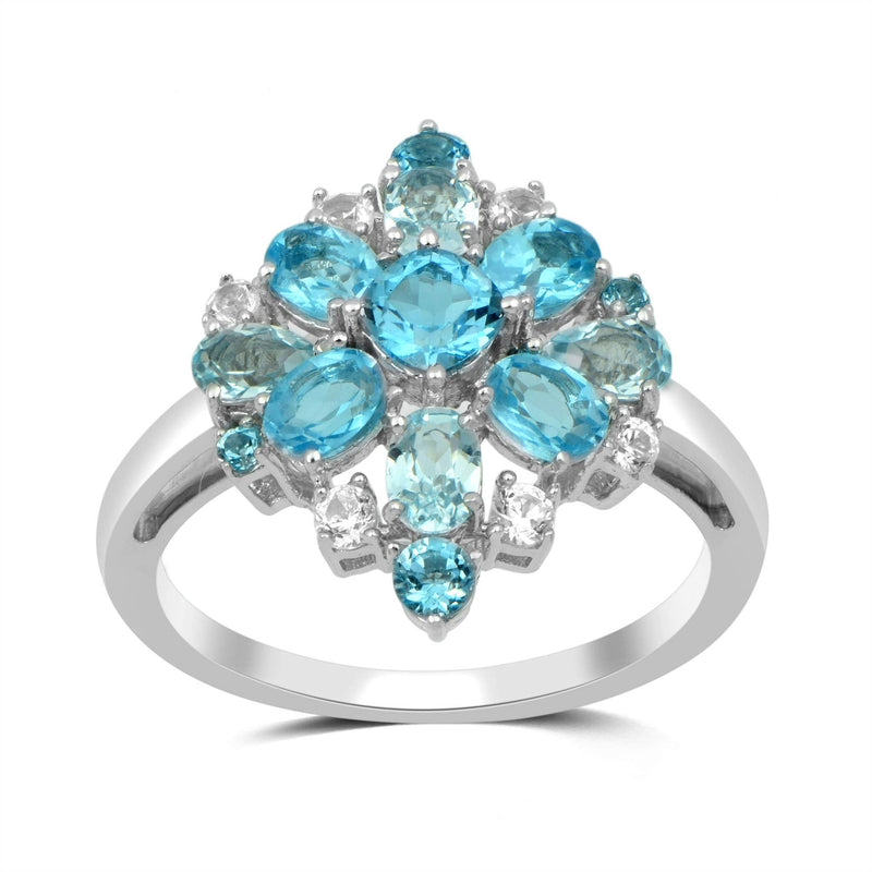 • Sterling Silver With Swiss Blue Topaz with Sky Blue Topaz and Created White Sapphire Cocktail Ring