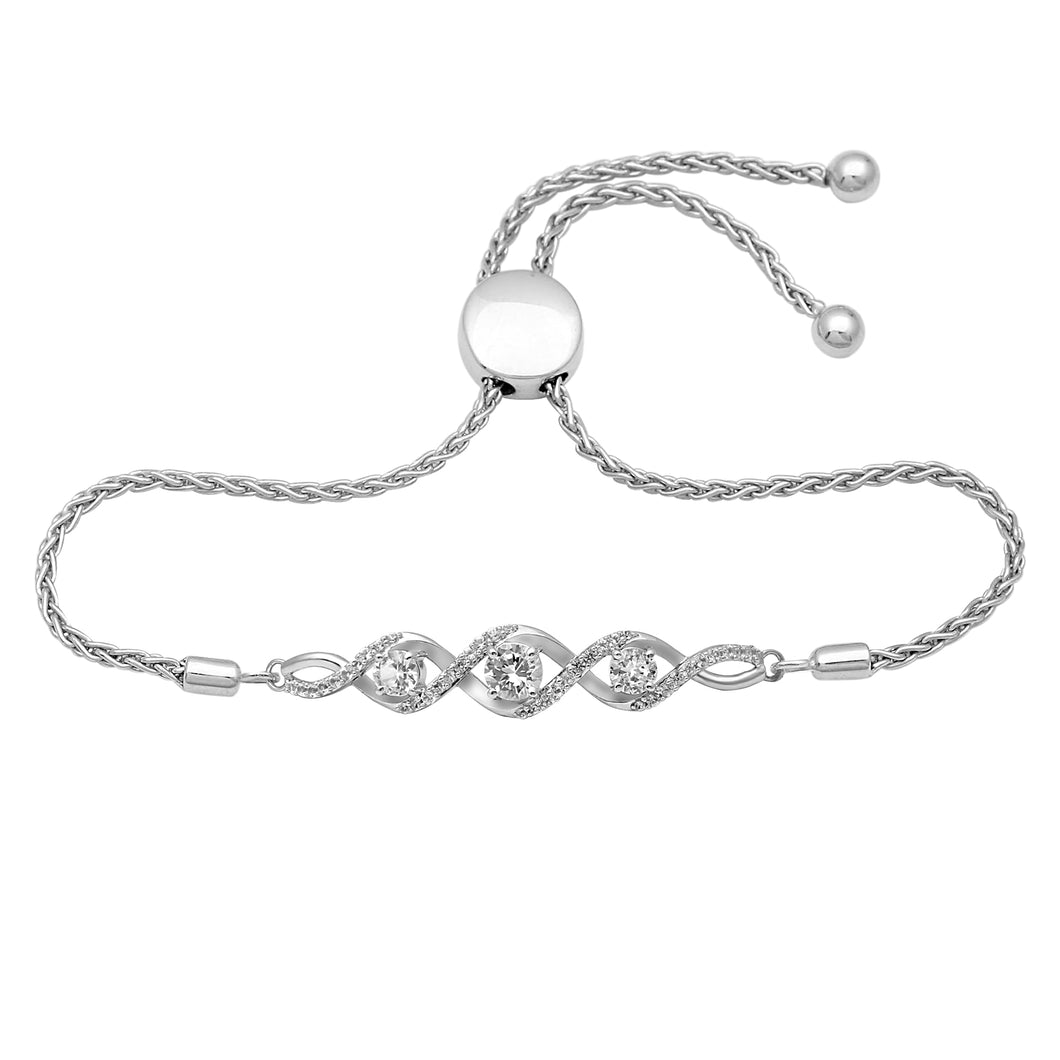 Jewelili Sterling Silver With Created White Sapphire Bolo Bracelet
