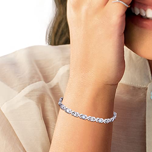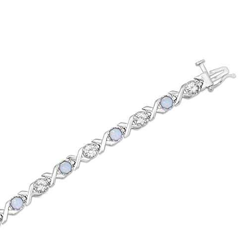Jewelili Sterling Silver With Created Opal and Created White Sapphire Bracelet, 7.5"