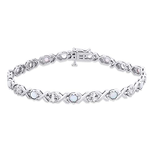 • Bracelet in Sterling Silver with 4MM Round Created Opal and 4 MM Round Created White Sapphire , 7.5"