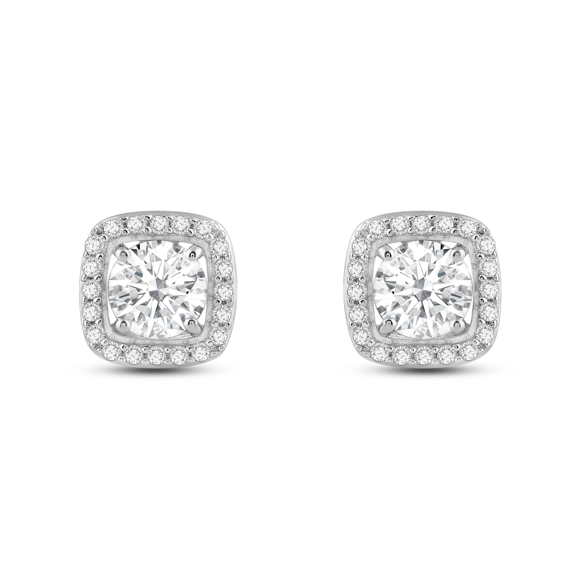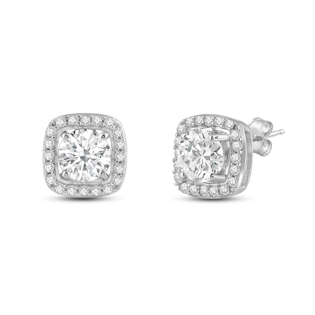 Jewelili Sterling Silver 5.0 MM Round Created White Sapphire Stud Earrings