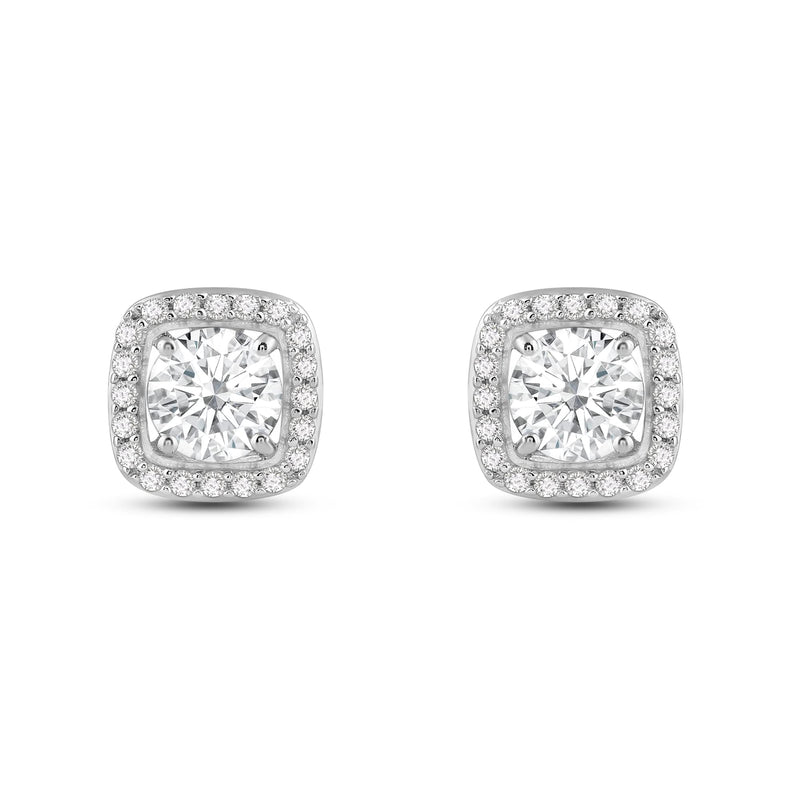 • Load image into Gallery viewer, Jewelili Sterling Silver 5.0 MM Round Created White Sapphire Stud Earrings