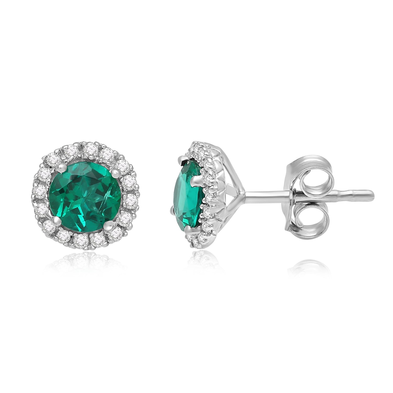 • Sterling Silver 5 mm Created Emerald and 1 mm Created White Sapphire Stud Earrings