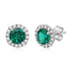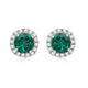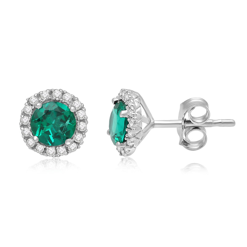 Jewelili Sterling Silver Created Emerald and Created White Sapphire Halo Stud Earrings