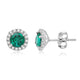 • Load image into Gallery viewer, Jewelili Sterling Silver Created Emerald and Created White Sapphire Halo Stud Earrings