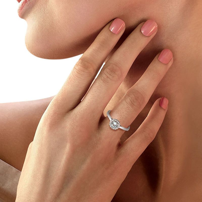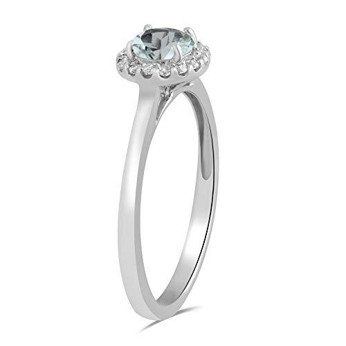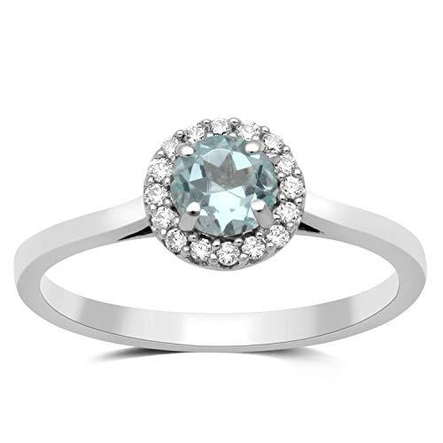 • Sterling silver 5mm round shape aquamarine and 1.1mm white round cubic zirconia ring