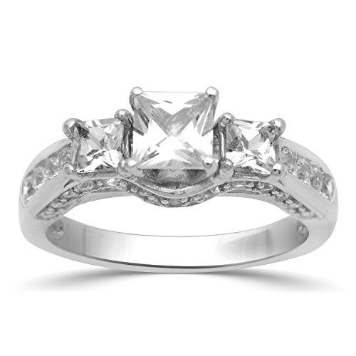 Jewelili Sterling Silver With Princess and Round Created White Sapphire 3 Stone Ring