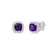 • Load image into Gallery viewer, Jewelili Sterling Silver Cushion Cut Amethyst and Round Created White Sapphire Halo Studs Earrings