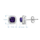 Jewelili Sterling Silver Cushion Cut Amethyst and Round Created White Sapphire Halo Studs Earrings