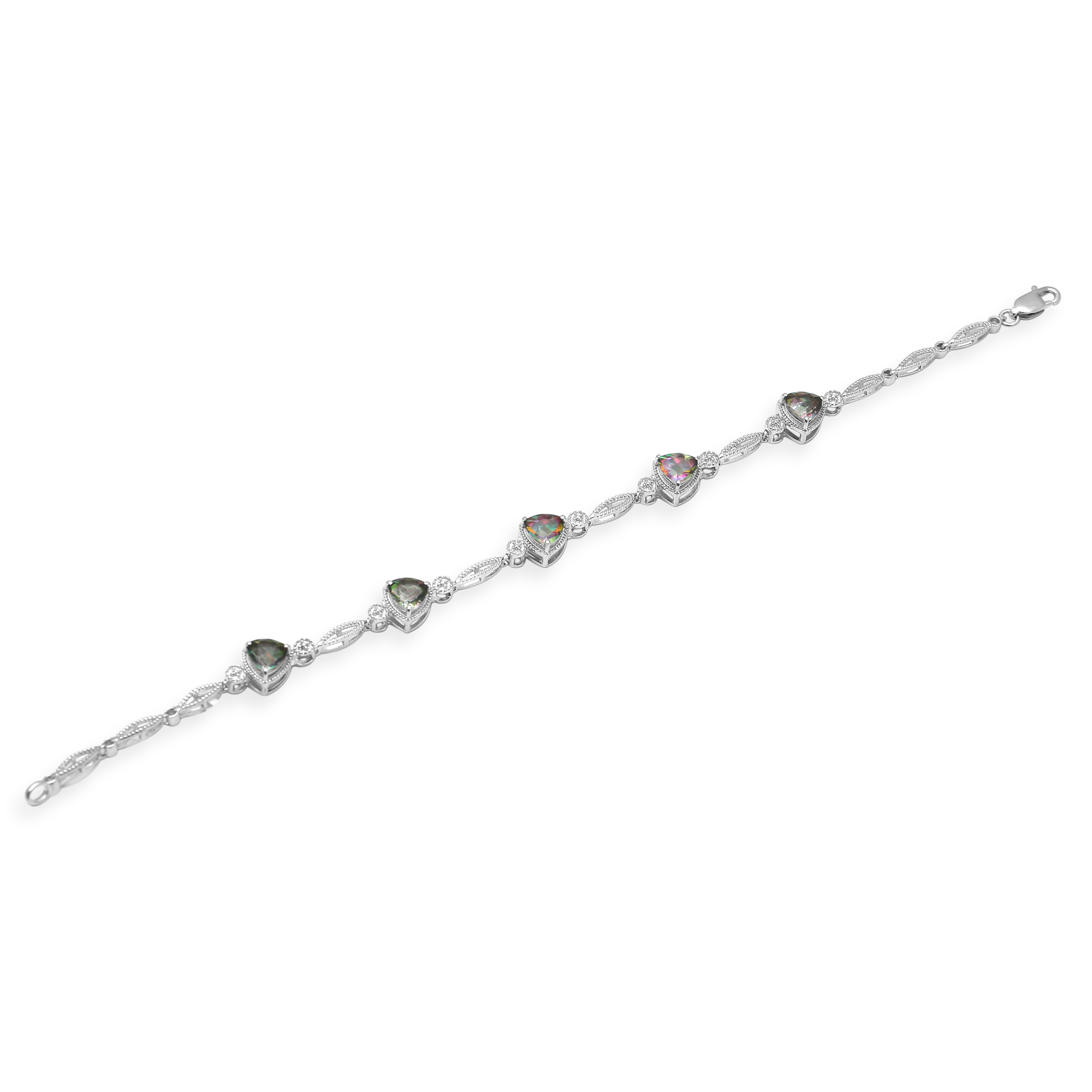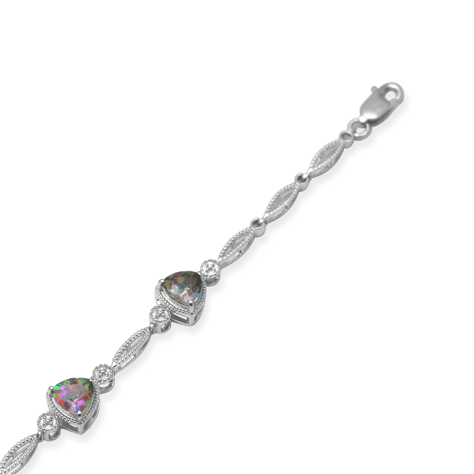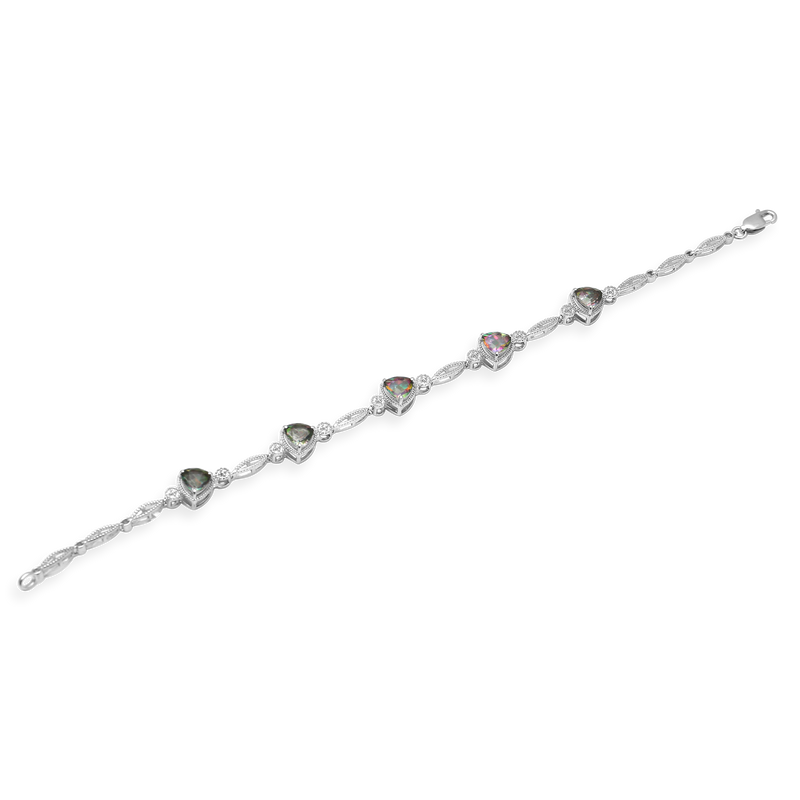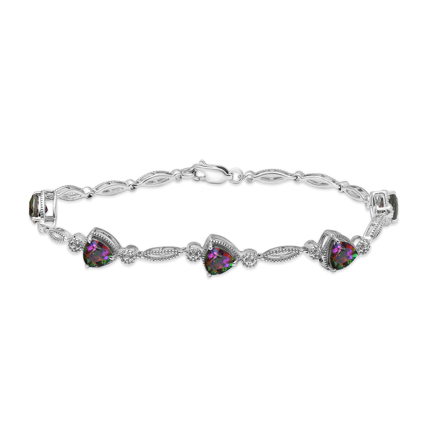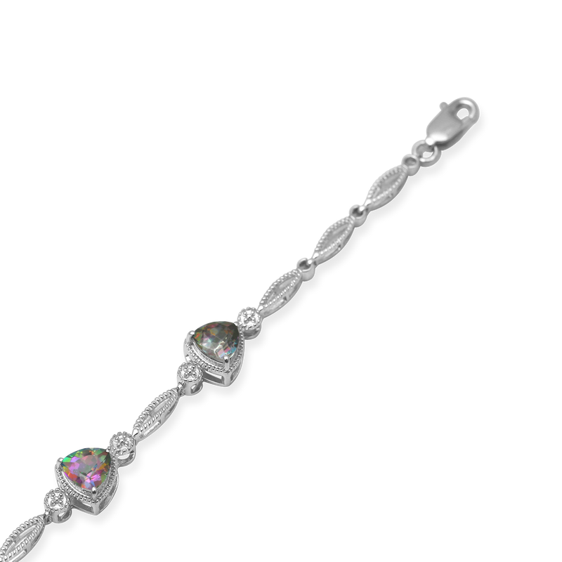 • Sterling Silver With Trillion Cut Mystic Topaz Link Bracelet
