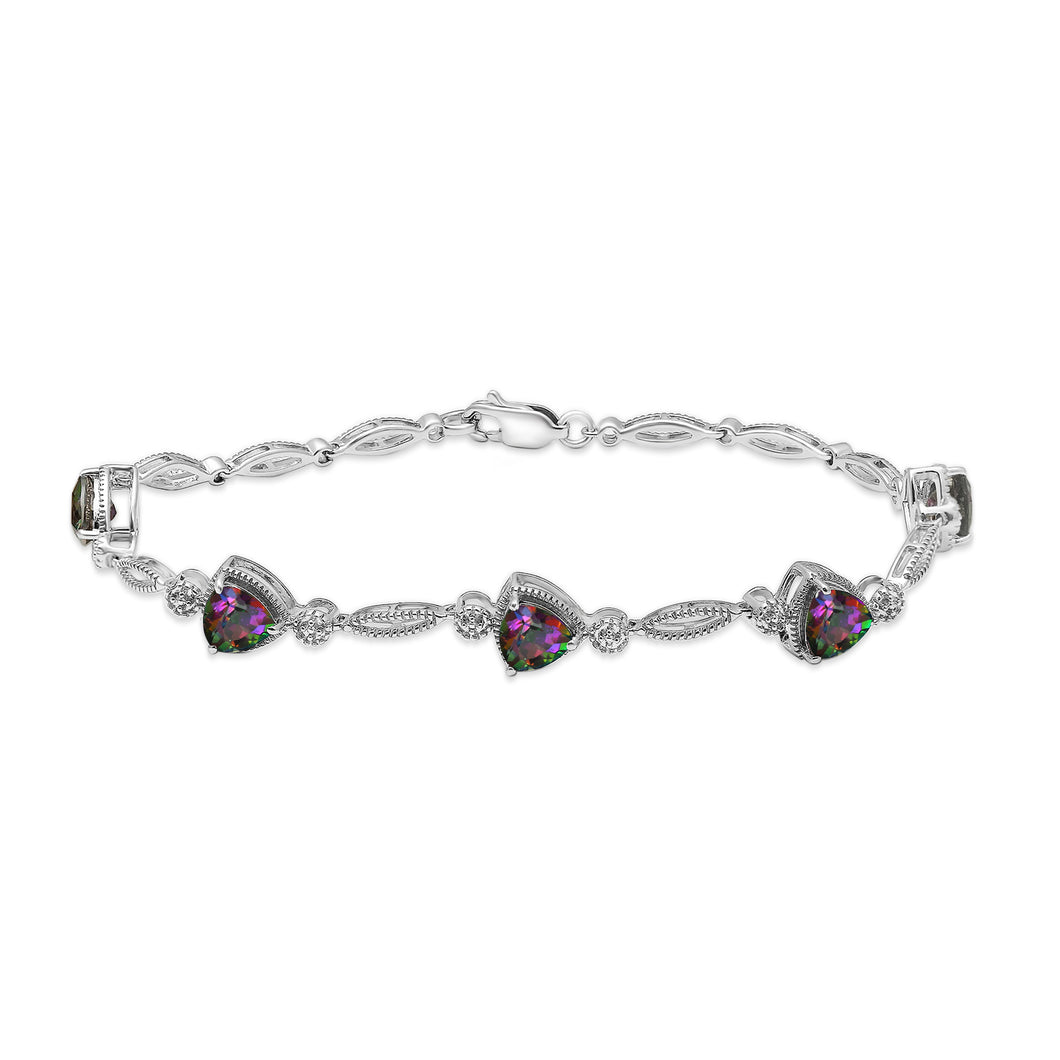 Jewelili Sterling Silver With Trillion Cut Mystic Topaz Link Bracelet