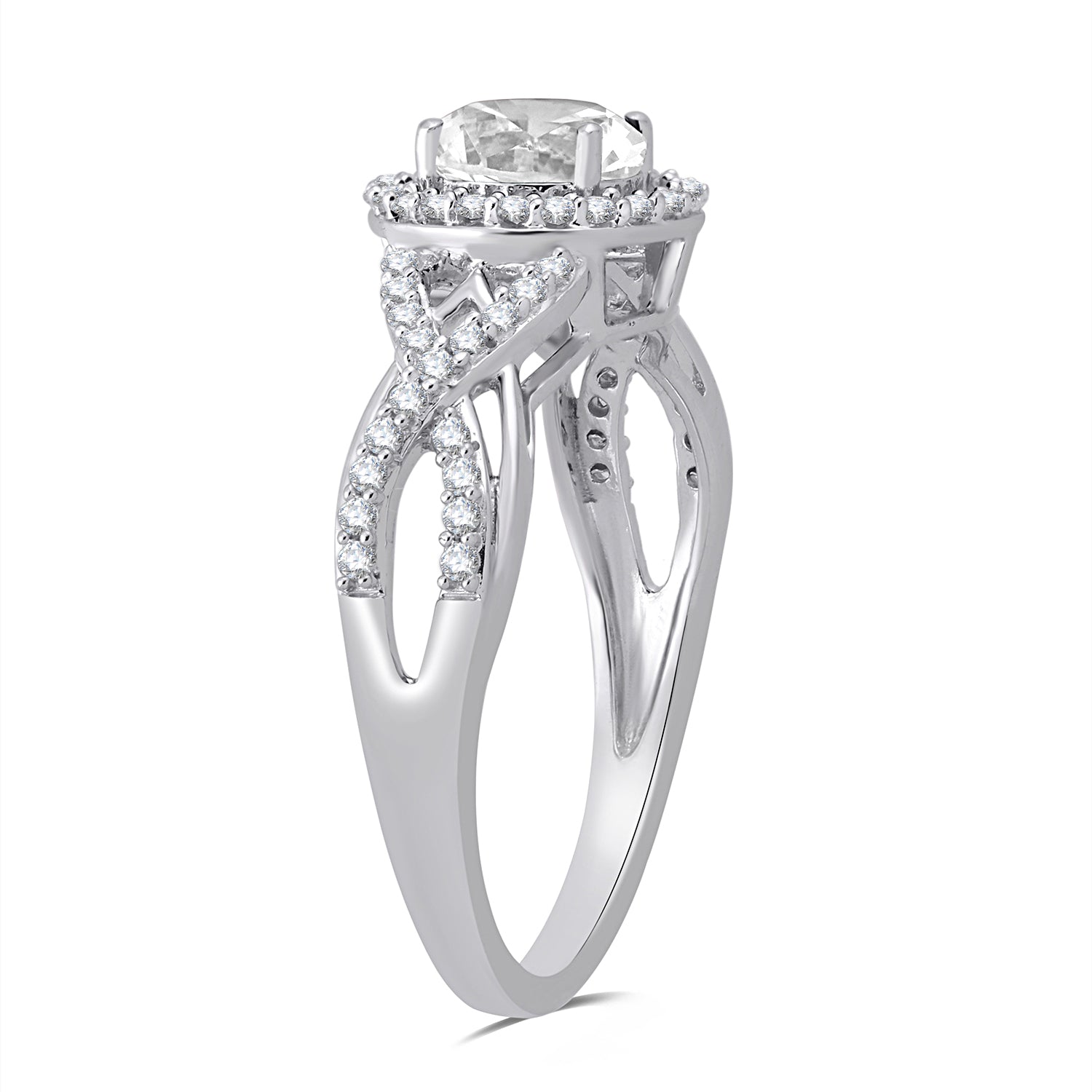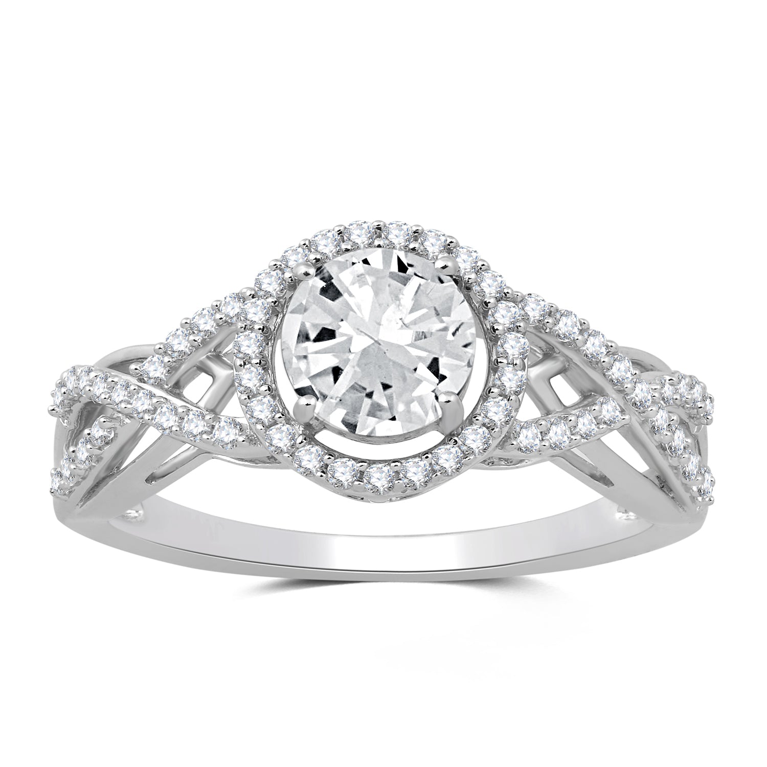 Jewelili Sterling Silver with Created White Sapphire Halo Ring