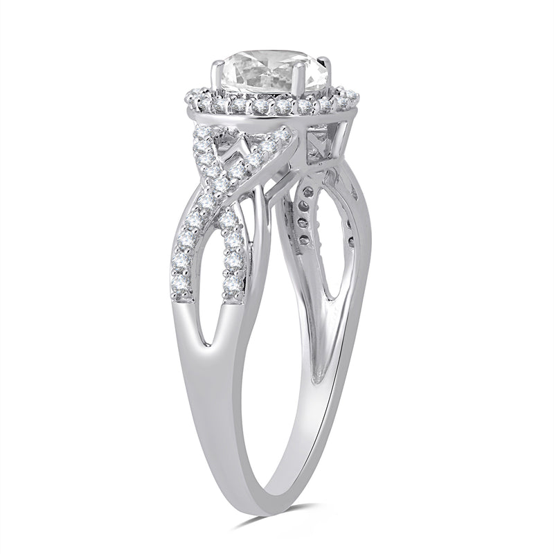• Load image into Gallery viewer, Jewelili Halo Ring with Created White Sapphire in Sterling Silver View 3