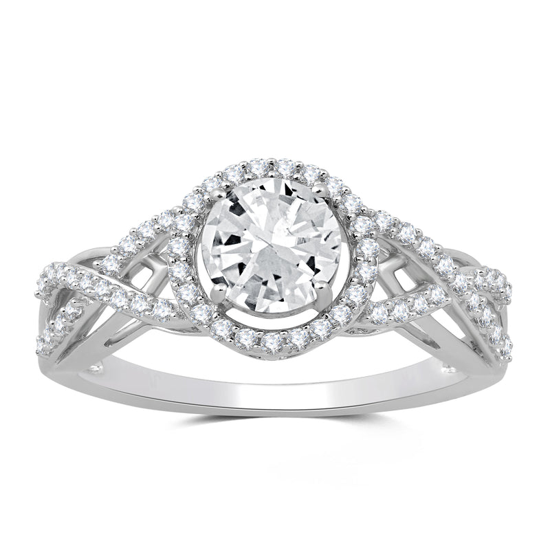 • Load image into Gallery viewer, Jewelili Halo Ring with Created White Sapphire in Sterling Silver View 1