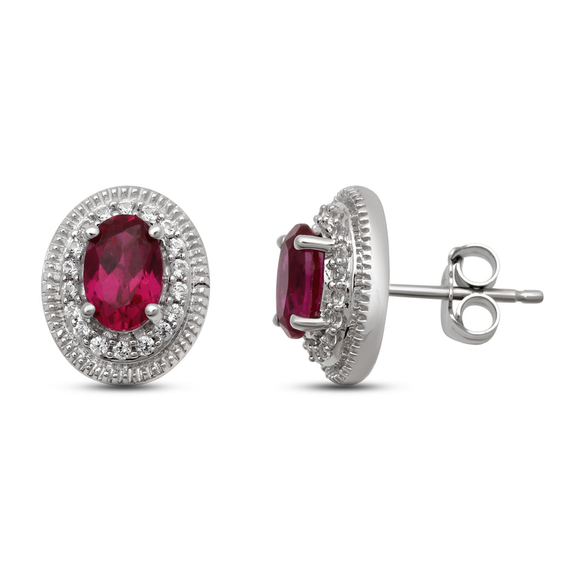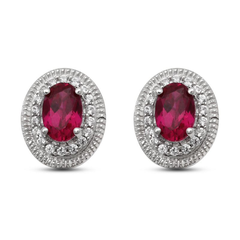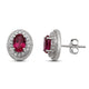 • Stud Earrings with Sterling Silver 6x4 MM Oval Shape Created Ruby and Round Created White Sapphire