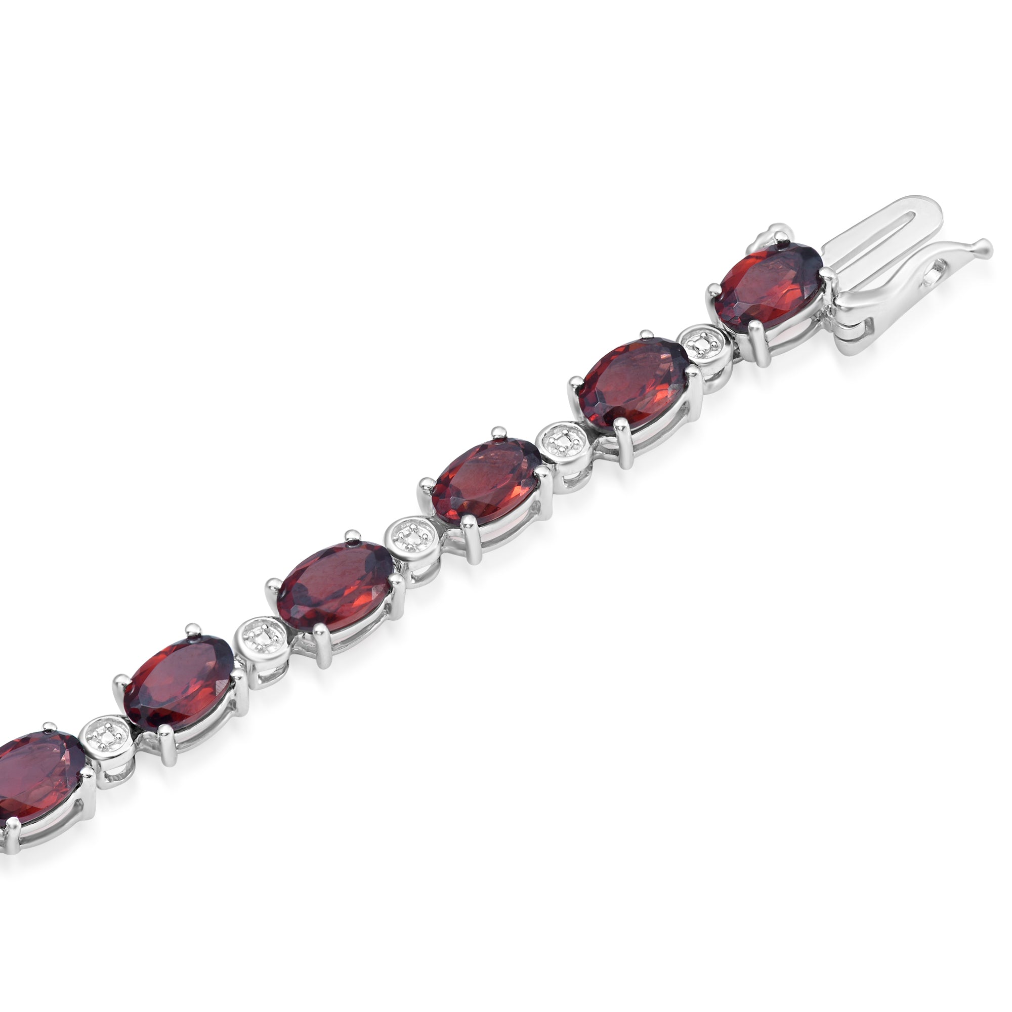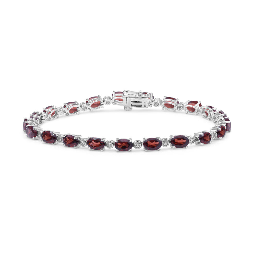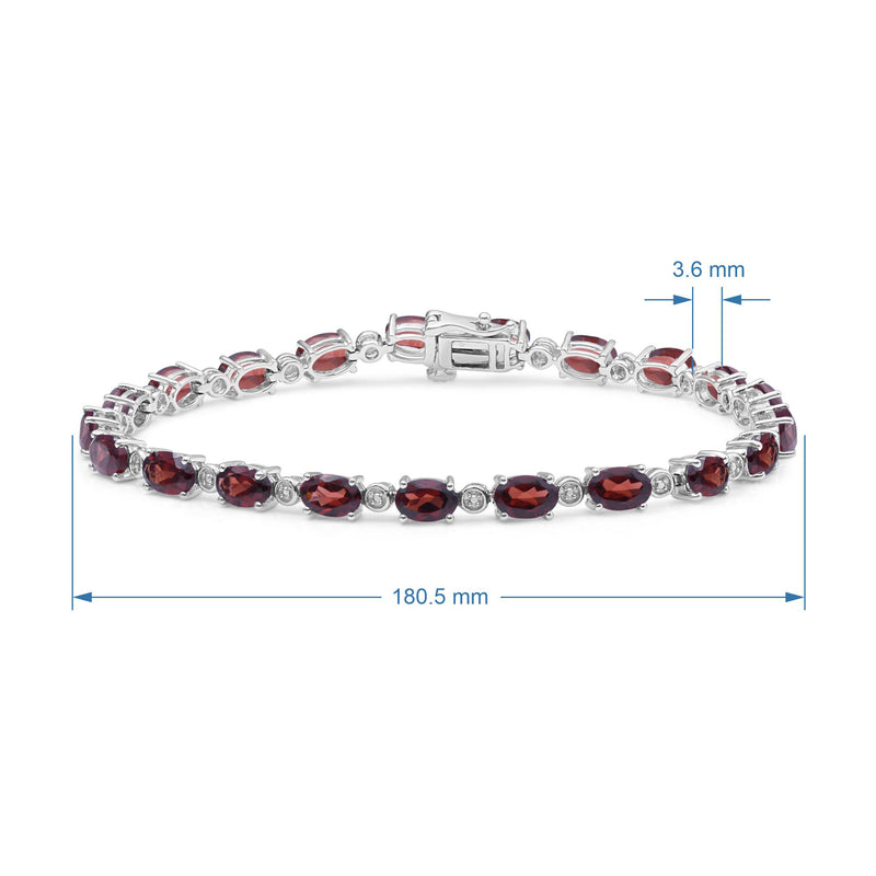 Jewelili Sterling Silver Oval Shape Garnet and Natural White Round Diamond Accent Link Bracelet