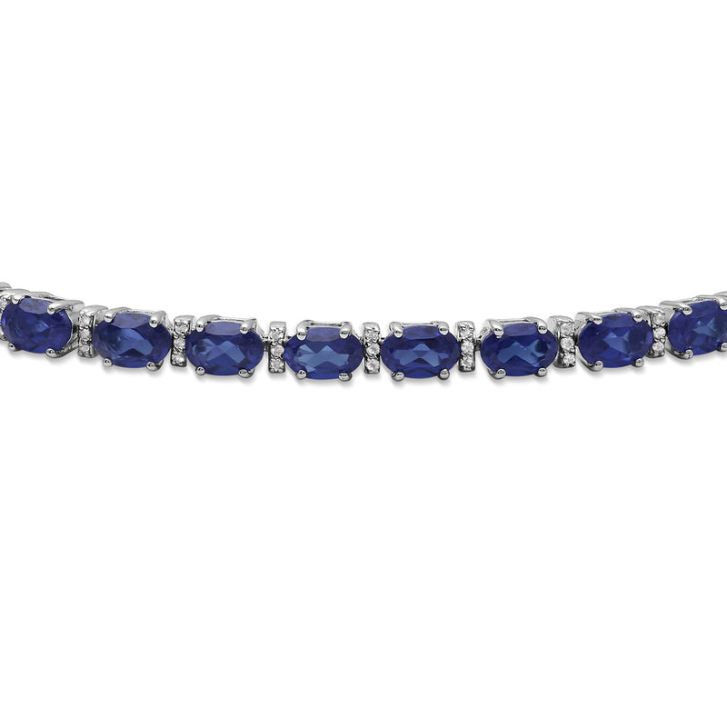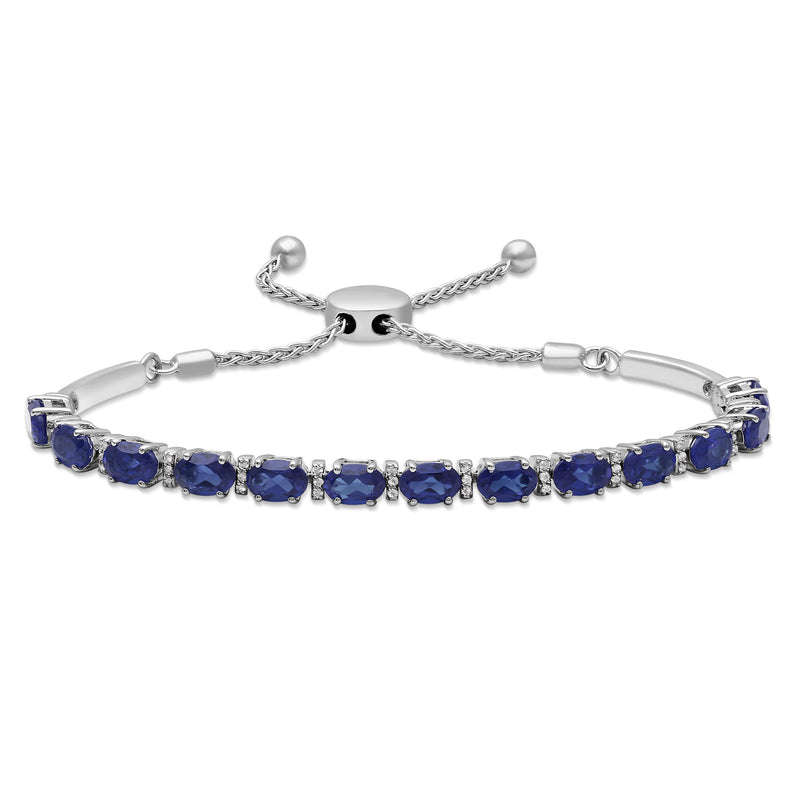 • Bolo Bracelet Featuring 6x4mm Oval Created Blue Sapphire & Diamond accent in Sterling Silver, Bolo Chain