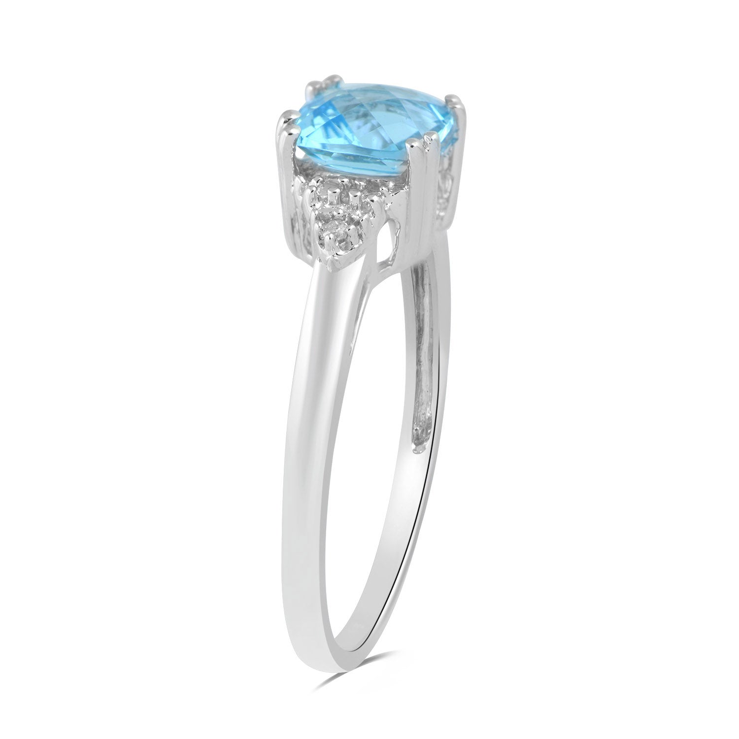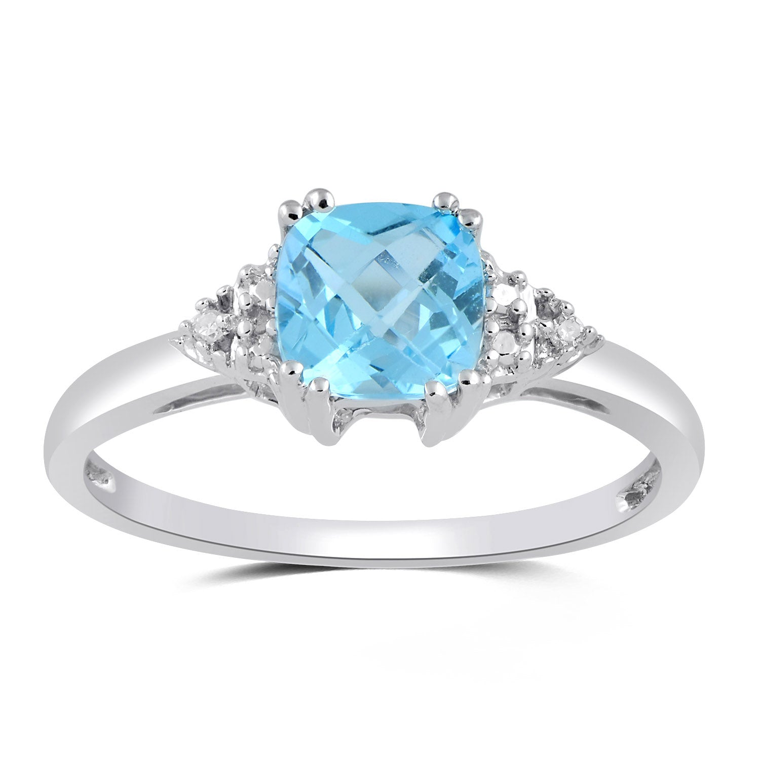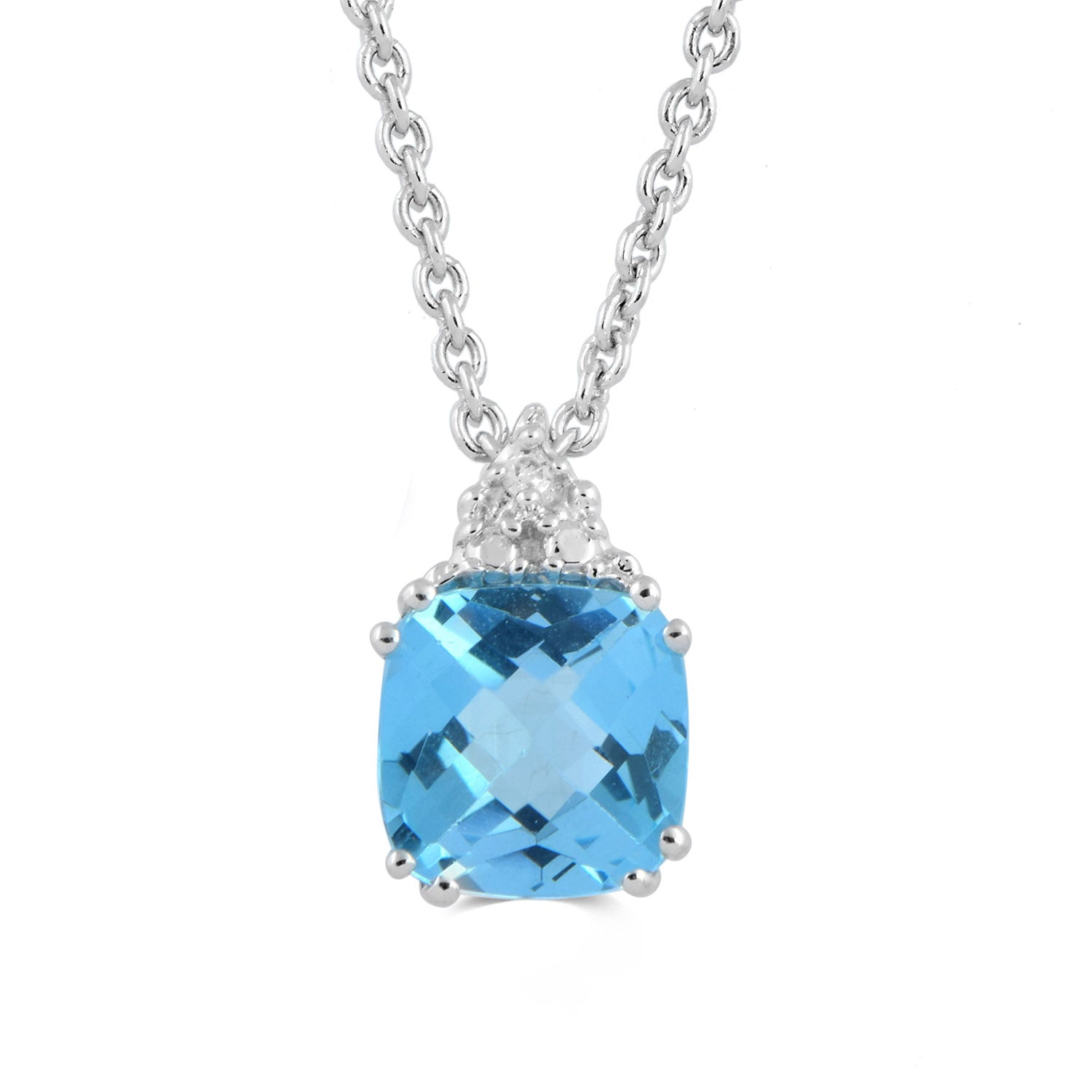 Details: This bold and stunning sterling silver Jewelry Set of ring and pendant is made with Checkerboard cushion-cut Swiss Blue Topaz and diamond. Ring Available in size 7