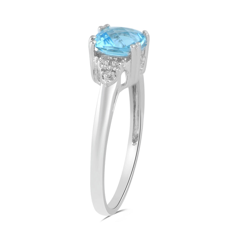 • Load image into Gallery viewer, Jewelili Diamond Ring and Pendant Jewelry Set Checkerboard Cushion Swiss Blue Topaz and Natural White in Sterling Silver Jewelry View 3