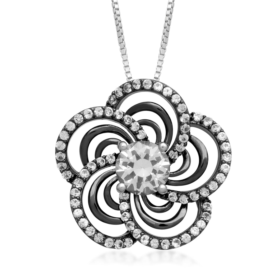 Jewelili Sterling Silver With Created White Sapphire Pendant Necklace