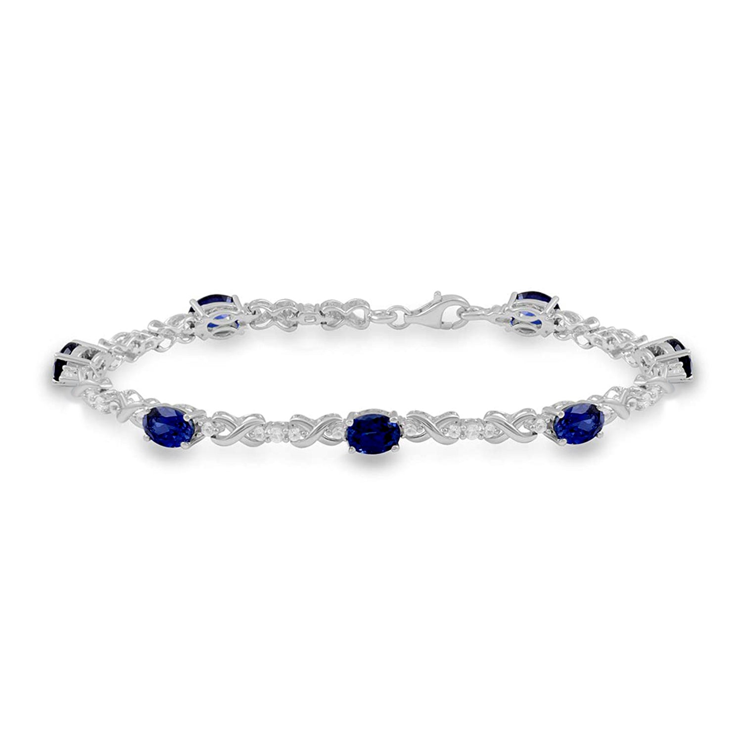• sterling silver 7 x 5 mm oval shape Created Sapphire and created White Sapphire Bracelet, 7.25"