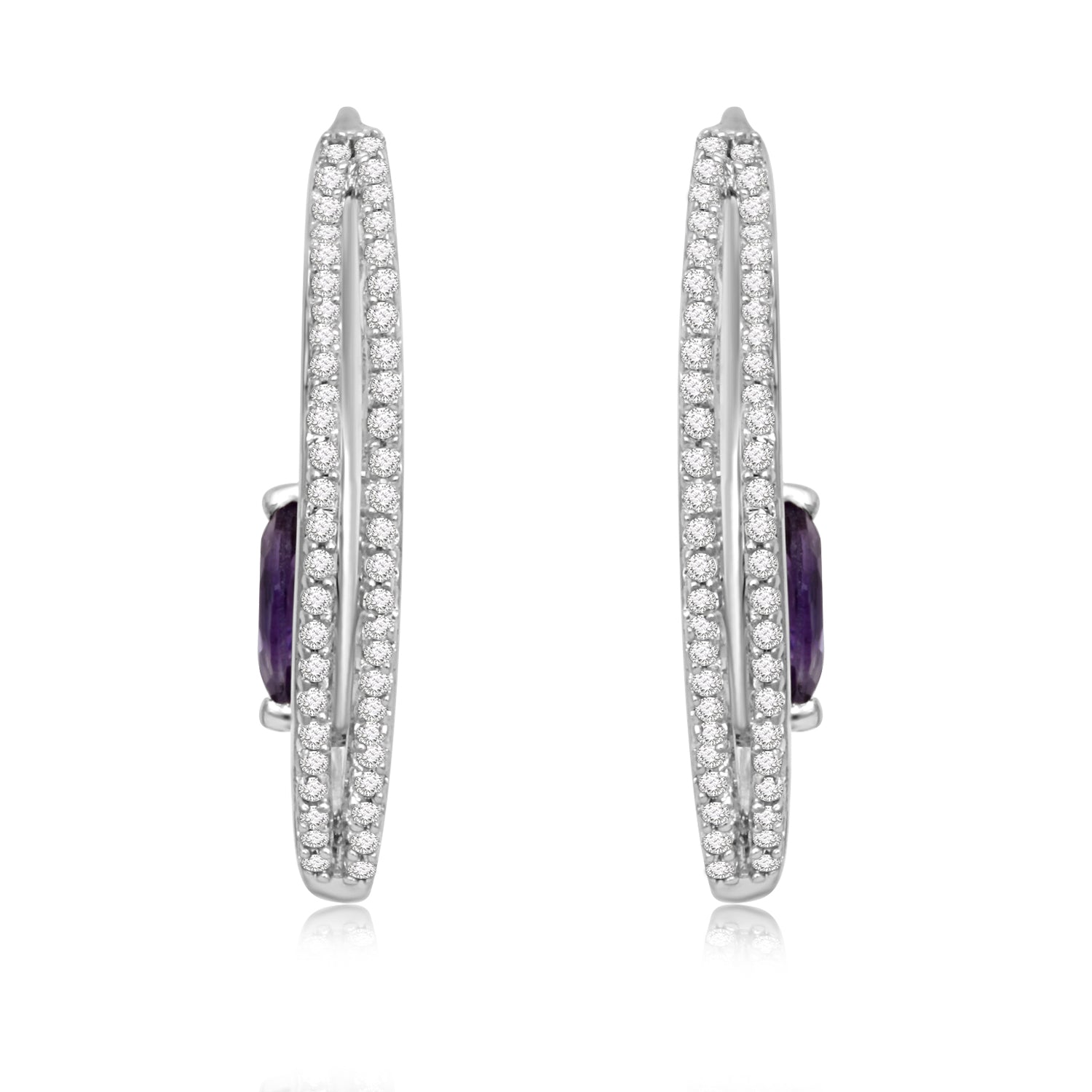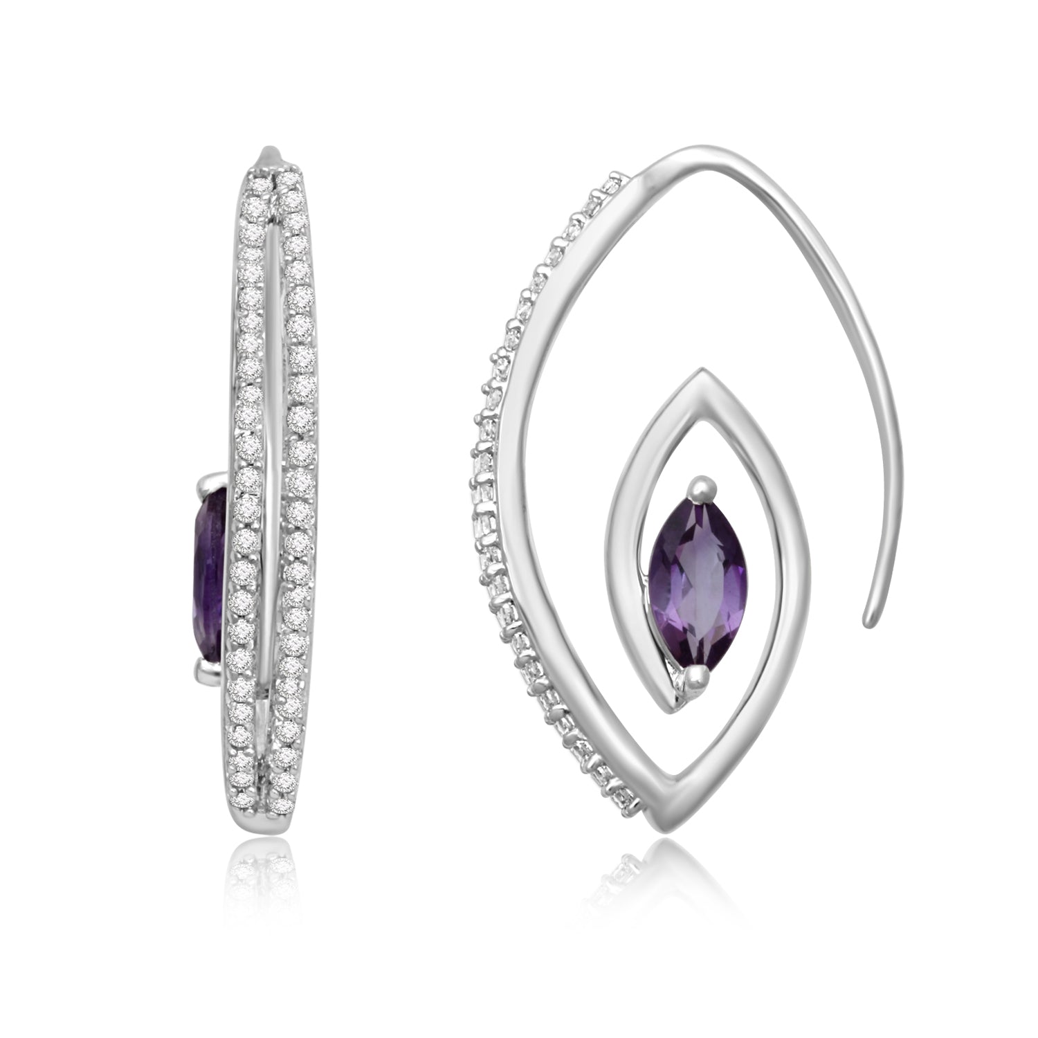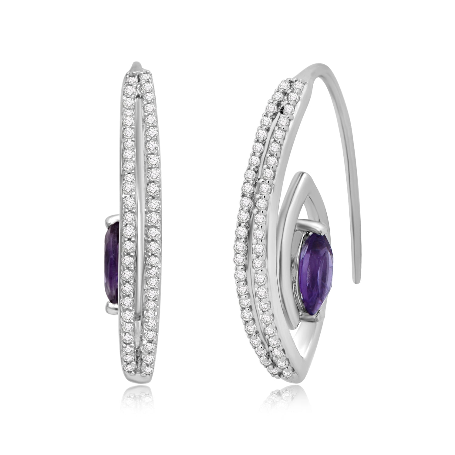 • Sterling Silver With Marquise Amethyst and Created White Sapphire Earrings