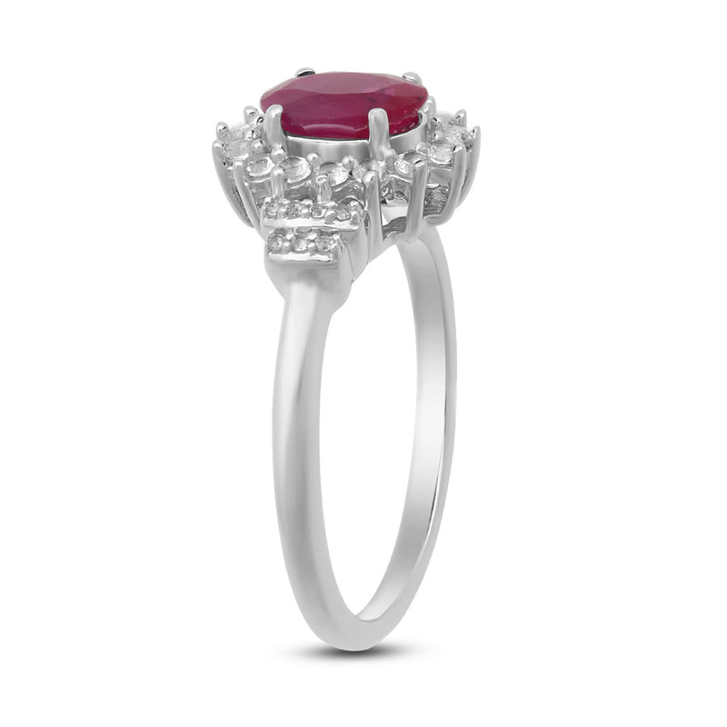 • Cluster Ring in Sterling Silver 7x5 MM Oval Created Ruby and Round Created White Sapphire Size 7