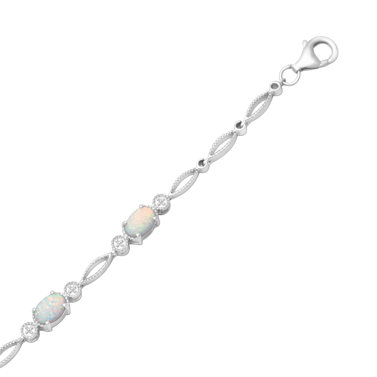 Jewelili Sterling Silver with 7X5 mm Oval Shape Created Opal Fashion Bracelet, 7.50"