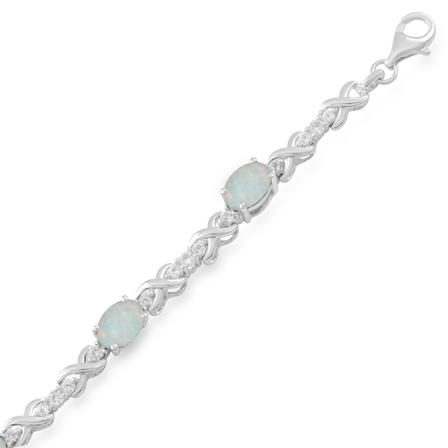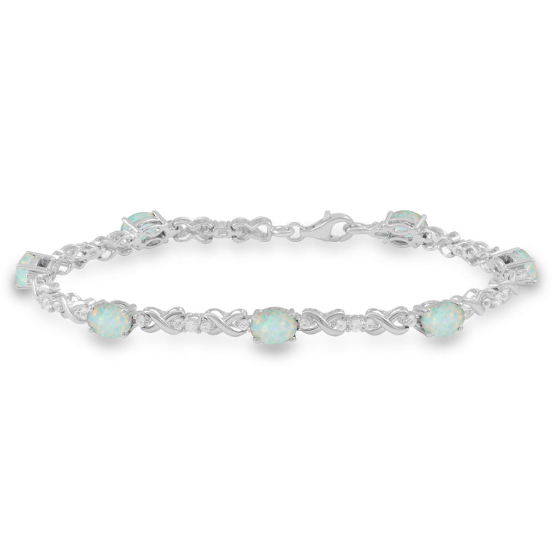 Jewelili Sterling Silver With 7x5 MM Oval Shape Created Opal and Created White Sapphire Bracelet