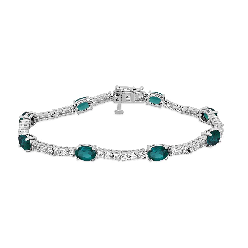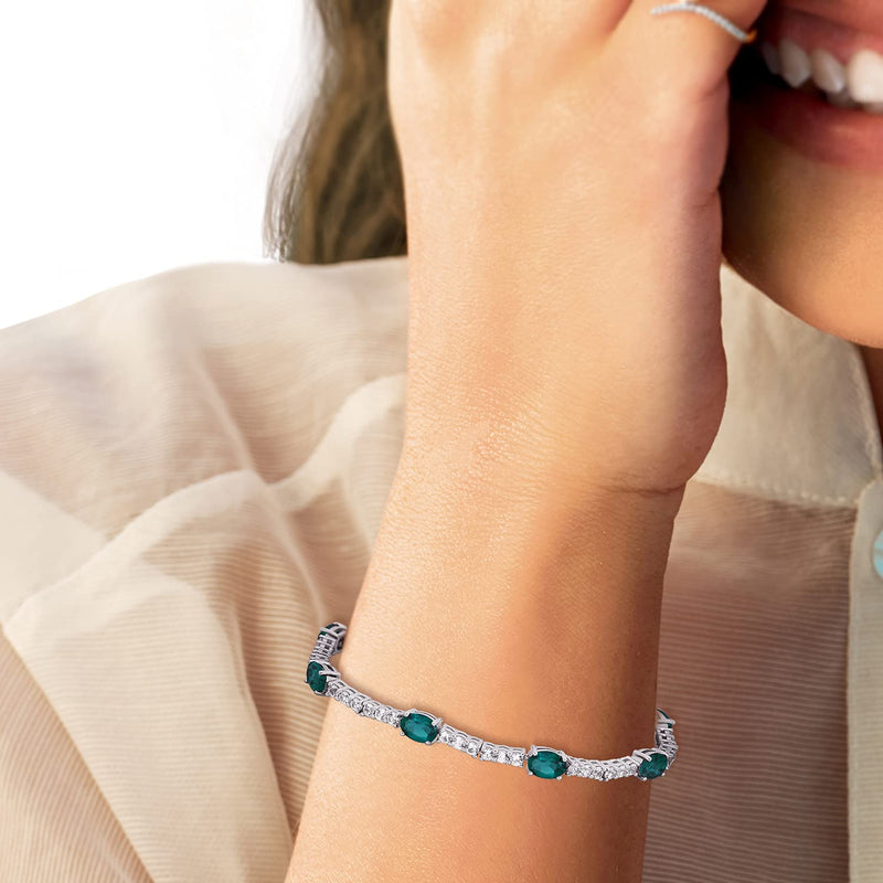 • Bracelet Sterling Silver 7x5mm Oval Created Emerald and Round Created White Sapphire