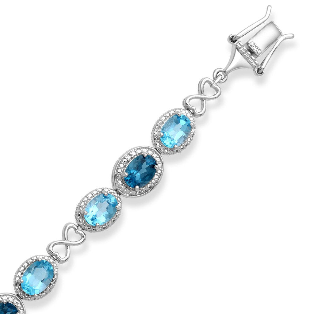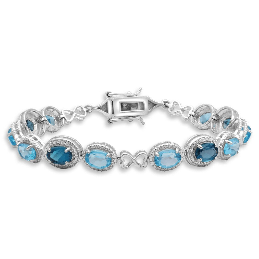 Jewelili Sterling Silver With Oval Swiss & London Blue Topaz and Round White Diamonds Tennis Bracelet