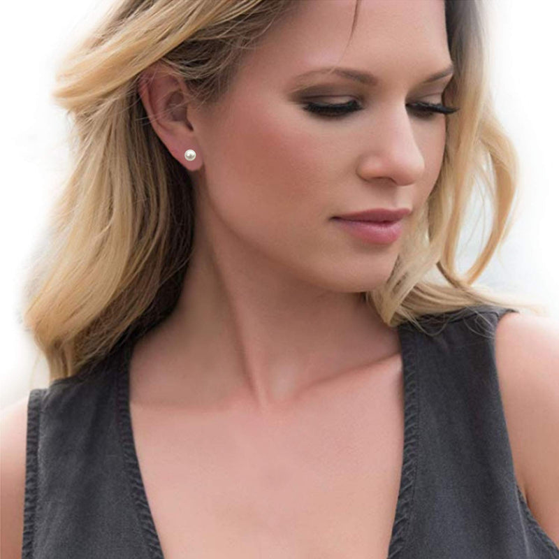 Jewelili Sterling Silver with Genuine Aqua water Pearl Stud Earrings