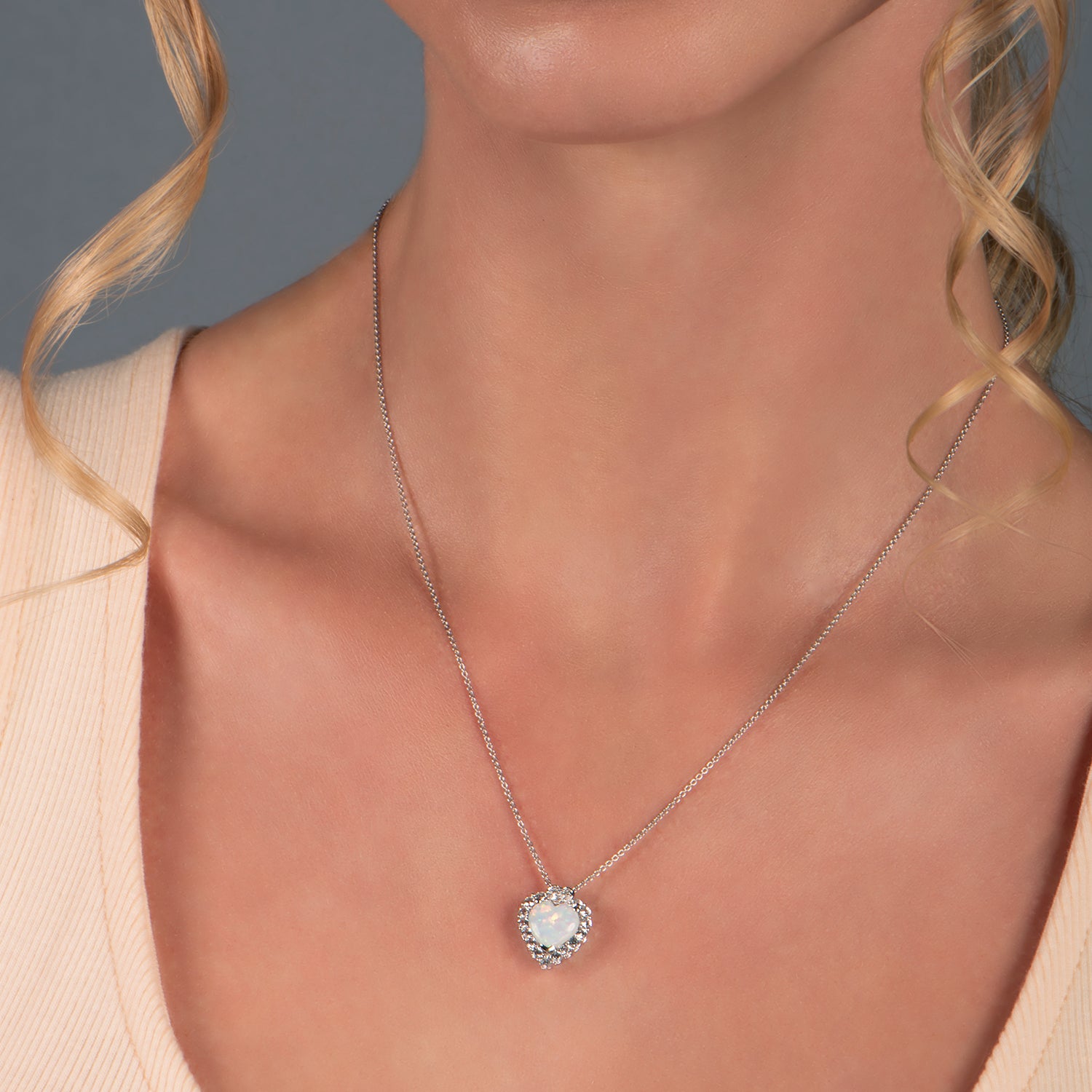• Load image into Gallery viewer, Jewelili Heart Pendant Necklace Opal & White Diamond Jewelry in Sterling Silver - View 2