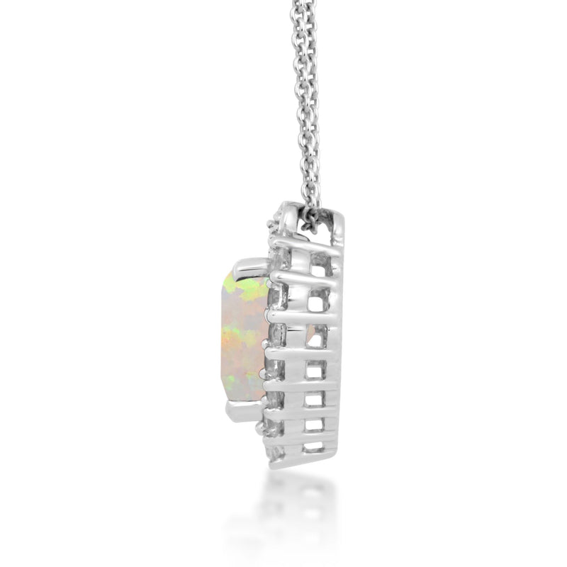 • This Necklace for women is accented with the October Birthstone – Opal, which is believed to bring the wearer peace and luck and also protects her from evil. Besides being a great gift for October babies, this Created opal necklace is also a precious addition to your jewelry collection with its luminous bright and dark colors that are reflected of its surface