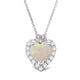 Jewelili Sterling Silver Heart Created Opal with Round Created White Sapphire and Diamonds Pendant Necklace