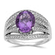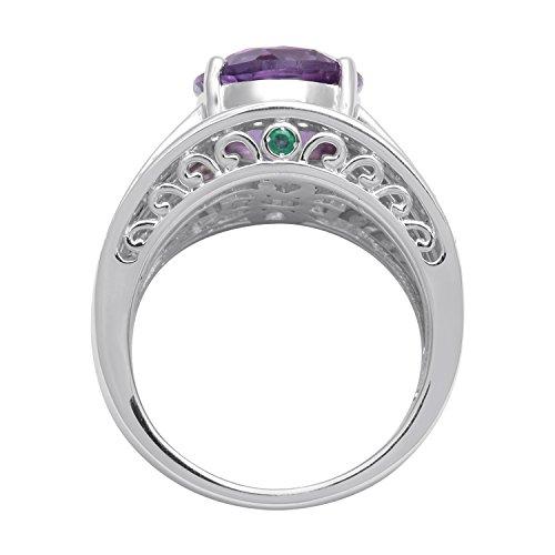Jewelili Sterling Silver Oval Shape Amethyst with Round White Topaz and Natural Emerald Ring