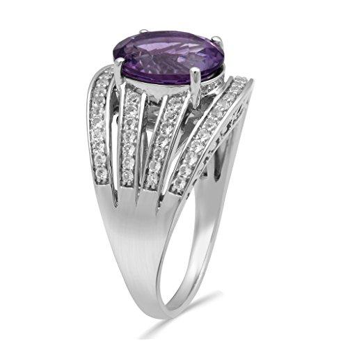 Details: Sterling Silver 12 X 10mm Oval Amethyst emerald and White topaz Ring