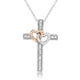• Double Heart Cross Pendant Necklace in Sterling Silver and 10K Rose Gold with 1/10 Cttw Natural White Round Diamond, 18" Rope Chain