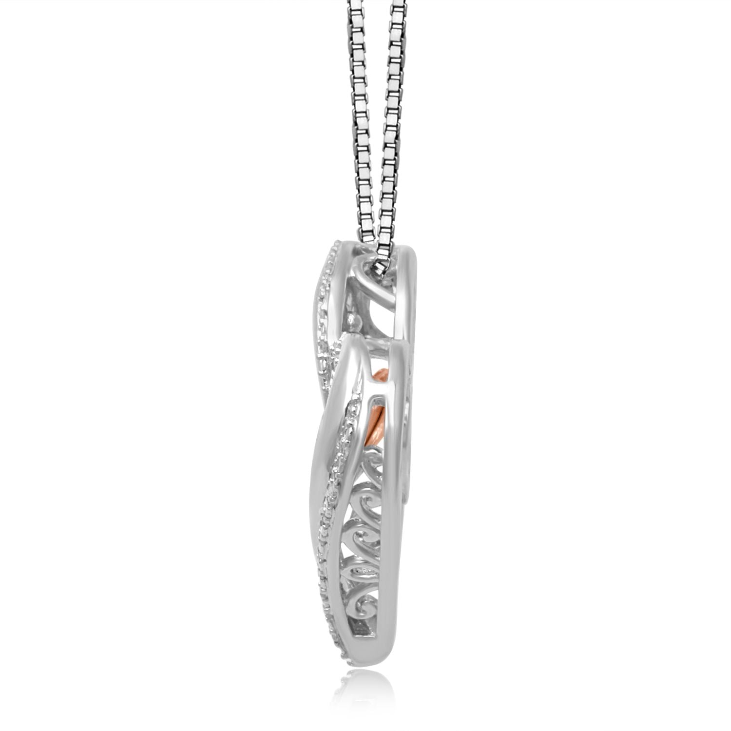 Jewelili Sterling Silver and 10K Rose Gold With 1/10 CTTW Natural White Diamond Two Tone Heart Pendant Necklace