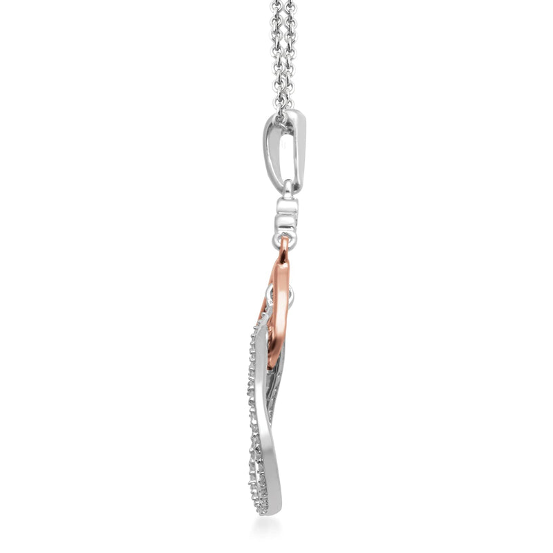 • Sterling Silver and 10K Rose Gold With 1/5 Cttw Natural White Diamonds Teardrop Pendant Necklace