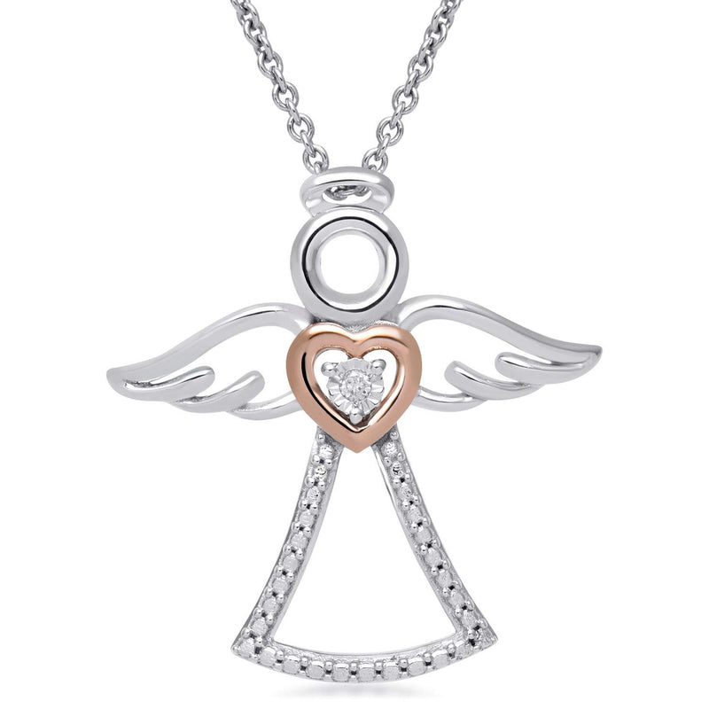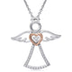 Jewelili Sterling Silver and 10K Rose Gold with Diamonds Archangel Pendant Necklace