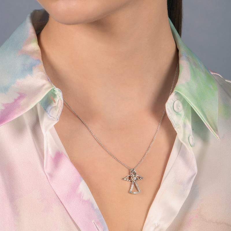 • Sterling Silver and 10K Rose Gold with Diamonds Archangel Pendant Necklace